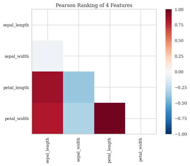 While PCA is great for dimensionality reduction and visualization, we do lose some interpretability in how the scientific measurements are correlated to the target species. For this, we look at feature rank and feature importance charts to determine the measurements most affecting the separation between classes.